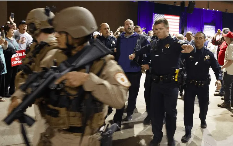 Just happened in Nevada. Not sure what happened but SS was jumping into the crowd so obviously some tolerant leftist is doing Hillary's bidding or at least trying to! He is back on stage now.