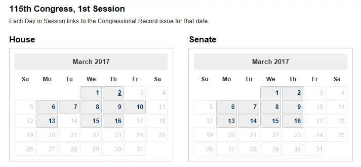 Days in Session of the U.S. Congress