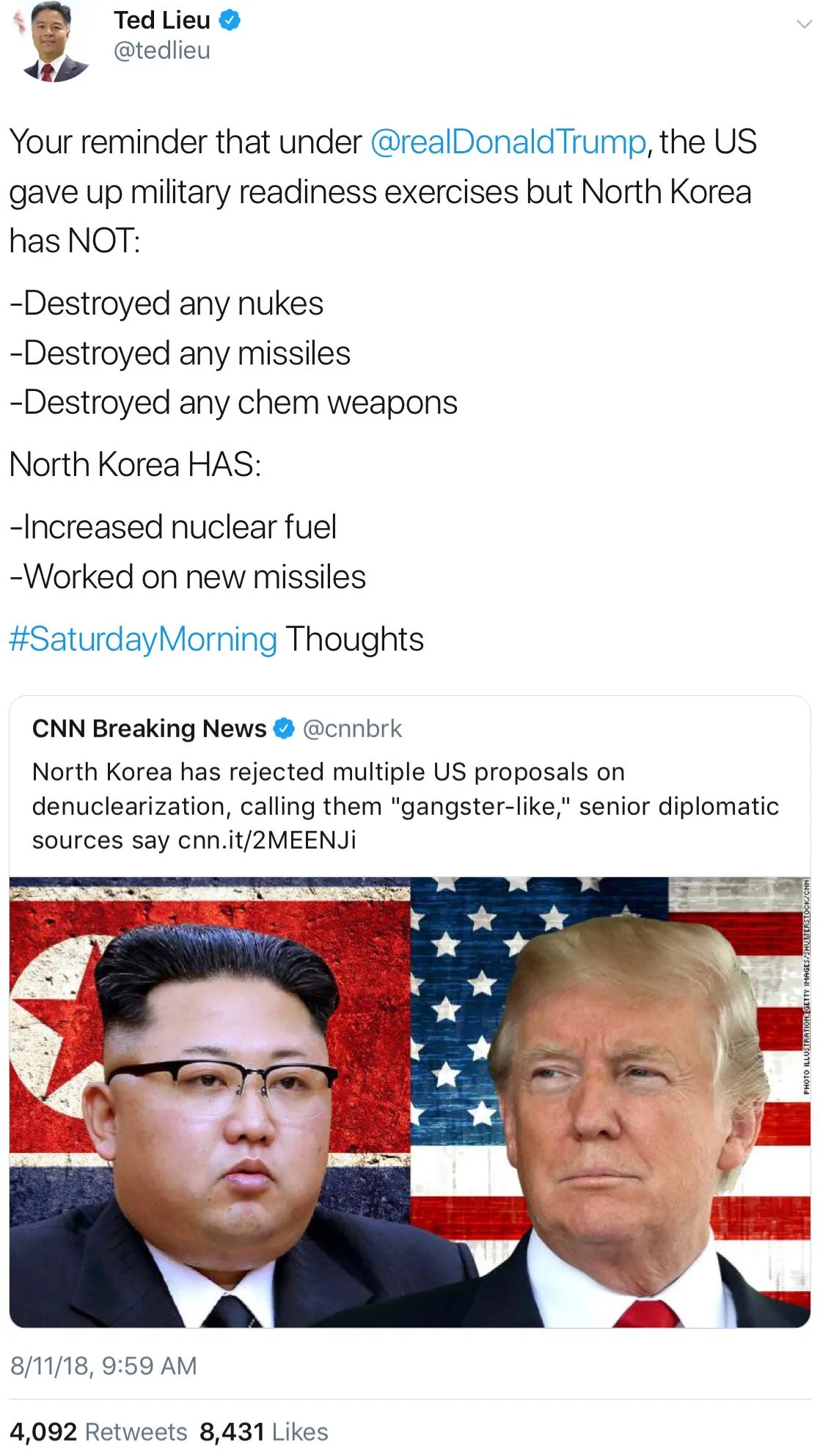 North Korea invited each of the last 4 presidents ti the negotiating table. They refused. Accepting this invitation is not an accomplishment.promise to sit at the negotiation table