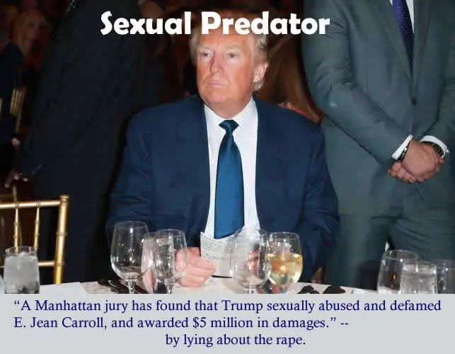 foundation, the Trump Org. was found guilty of criminal tax fraud and falsifying business records, Don has been charged with 34 felony counts in NY, is under investigation by the DoJ for stealing classified docs and possible seditious conspiracy, under investigation in GA for pressuring election officials to overturn the state's verified results, and guilty of sexual battery and defamation.
