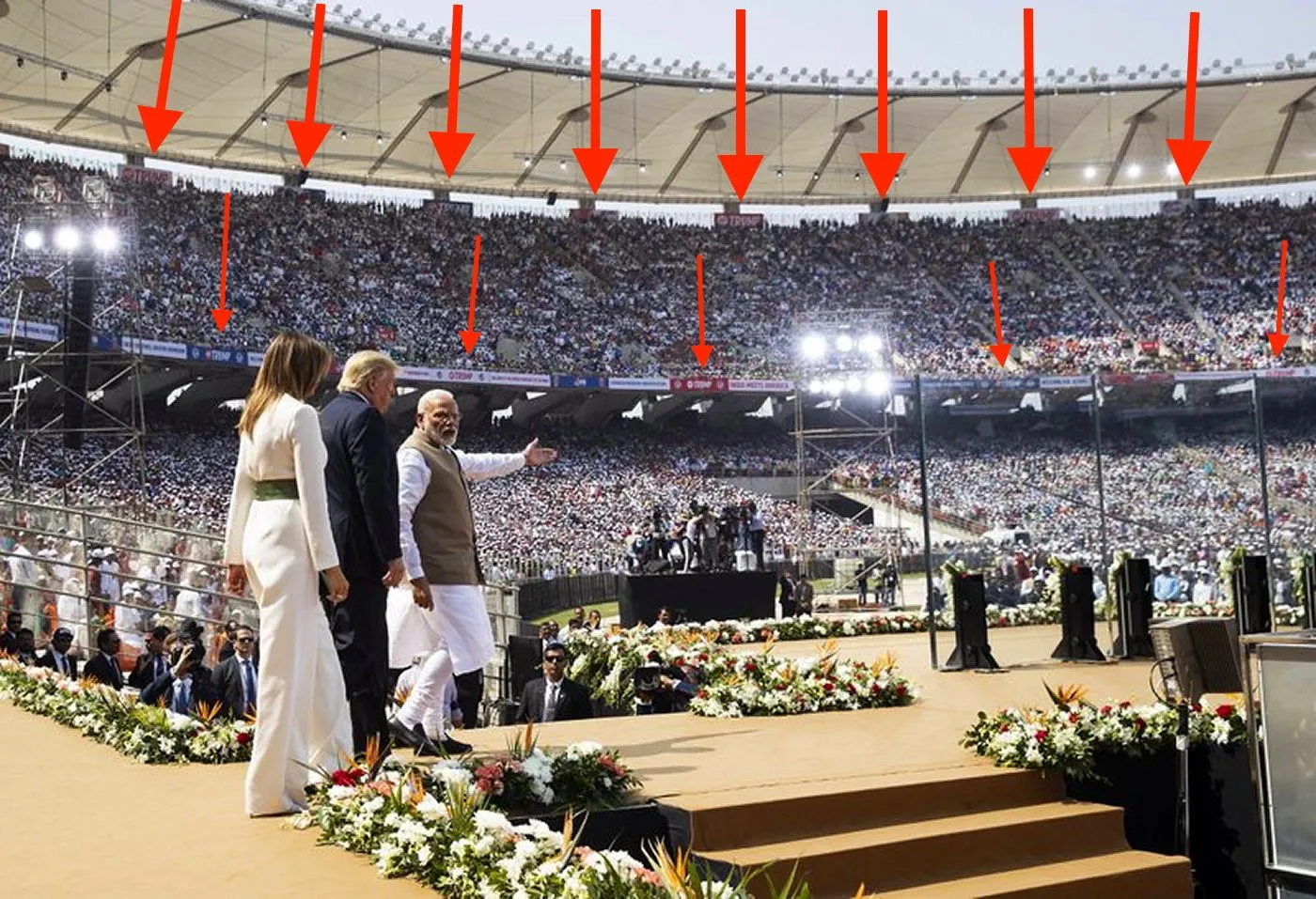Trump had a previous mission there to India last September and it was attended by 50,000. This time it was attended by over 100,000, possibly 125,000 in the largest stadium of its kind possibly larger than any in the USA! It dwarfed the Superbowl! People waited for hours in the hot sun and no single picture can do justice to the scope of the event. To even try to take it all in, you need a fish-eye lens where the individual people can no longer even be seen!