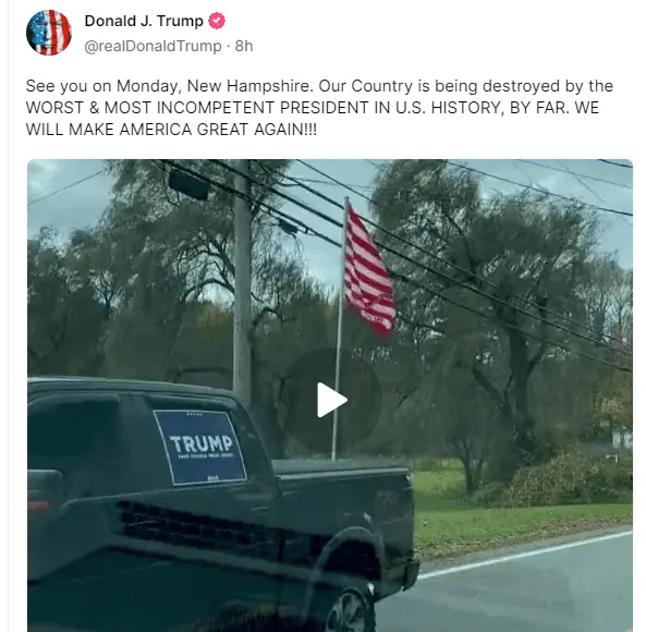Trump was just in New Hampshire on Monday for a campaign event in Wolfeboro, where he laid the blame for last weekend's attacks on Israel at the feet of President Joe Biden.