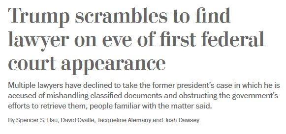 So..Trump doesn't pay his lawyer bills?The fact that he stiffs his lawyers also is a factor. Anyone representing him needs to say "wire me the money - when it's in my account we'll talk".