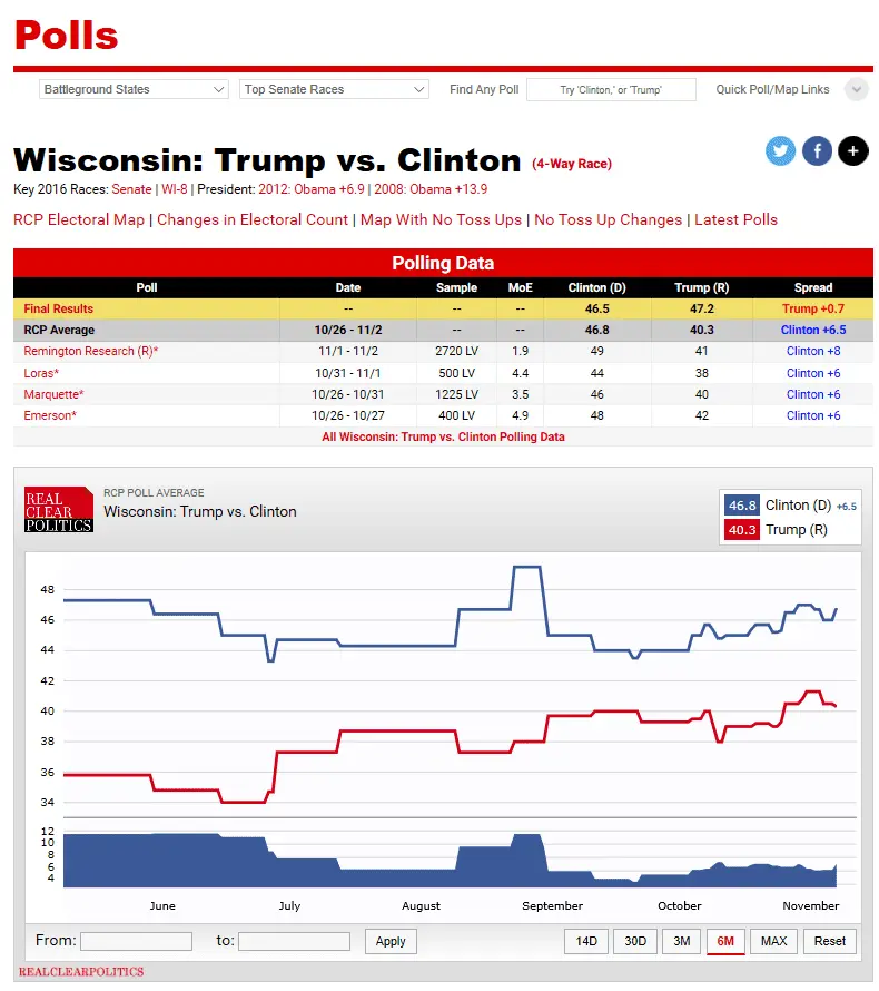 I feel sorry for pollsters to be honest. The Trump phenomenon and the silence of so many of his supporters when responding to these polls (or not being polled at all), is astonishing.