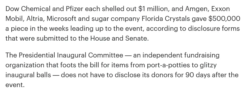 Nice edit there, and i am supposed to believe that?Corporate donors to Trump inaugural revealed