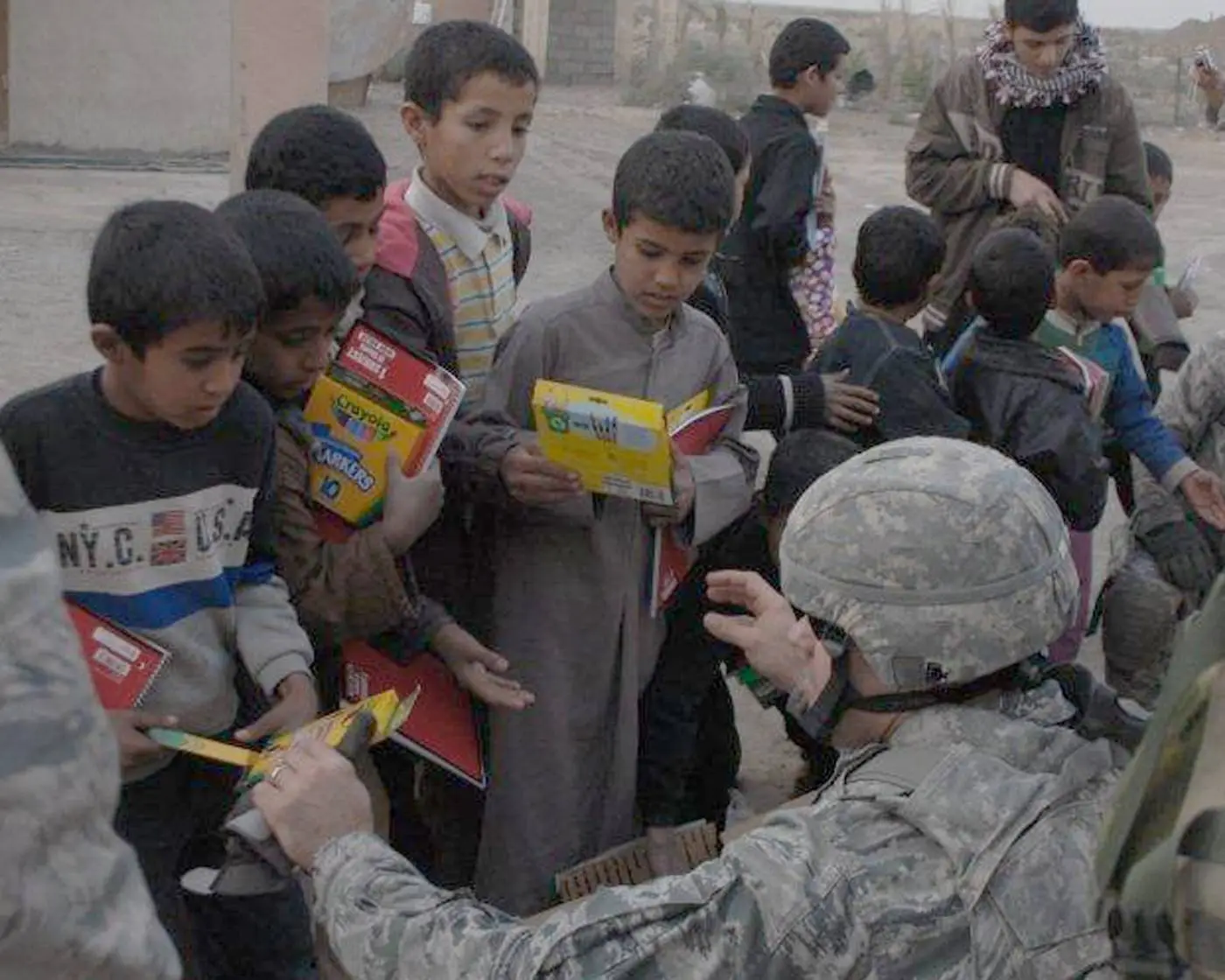 Wait!!! Is he killing those kids? Naw, he’s handing out crayons so they can color..
