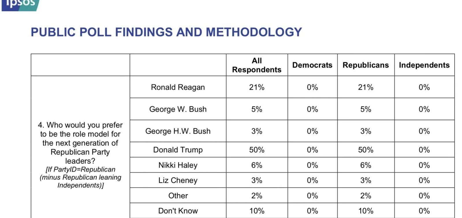 Topline Findings from the latest Reuters/Ipsos poll