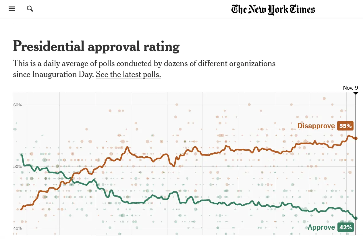 A new low for Trump approval, government spending, institutional trust, No Kings, and daylight time: October 24 - 27, 2025 Economist/YouGov Poll | YouGov