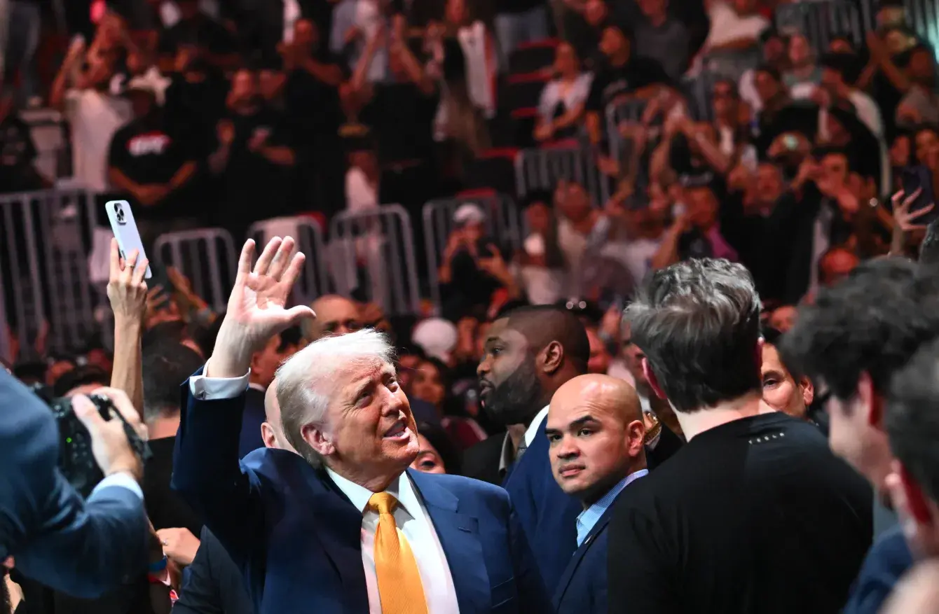 Trump receives hero's welcome at UFC 314 as he's flanked by MAGA entourage