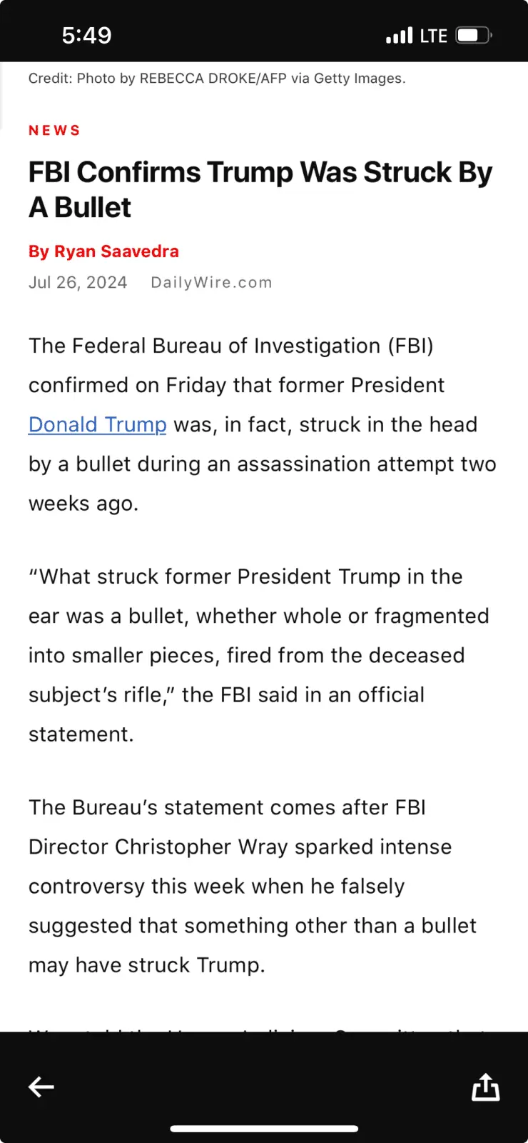 Just herd on the news that the FBI has clarified that Trump was hit with a bullet…He's also a Trump cultist who says ridiculous shit. Not a good source.