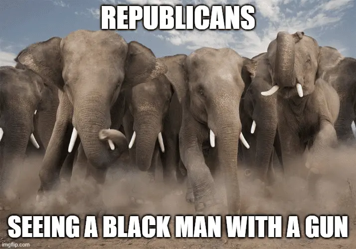 Or a book!They don't have to see a black man with a gun to do that. They will run at if they see a black man with a frown.