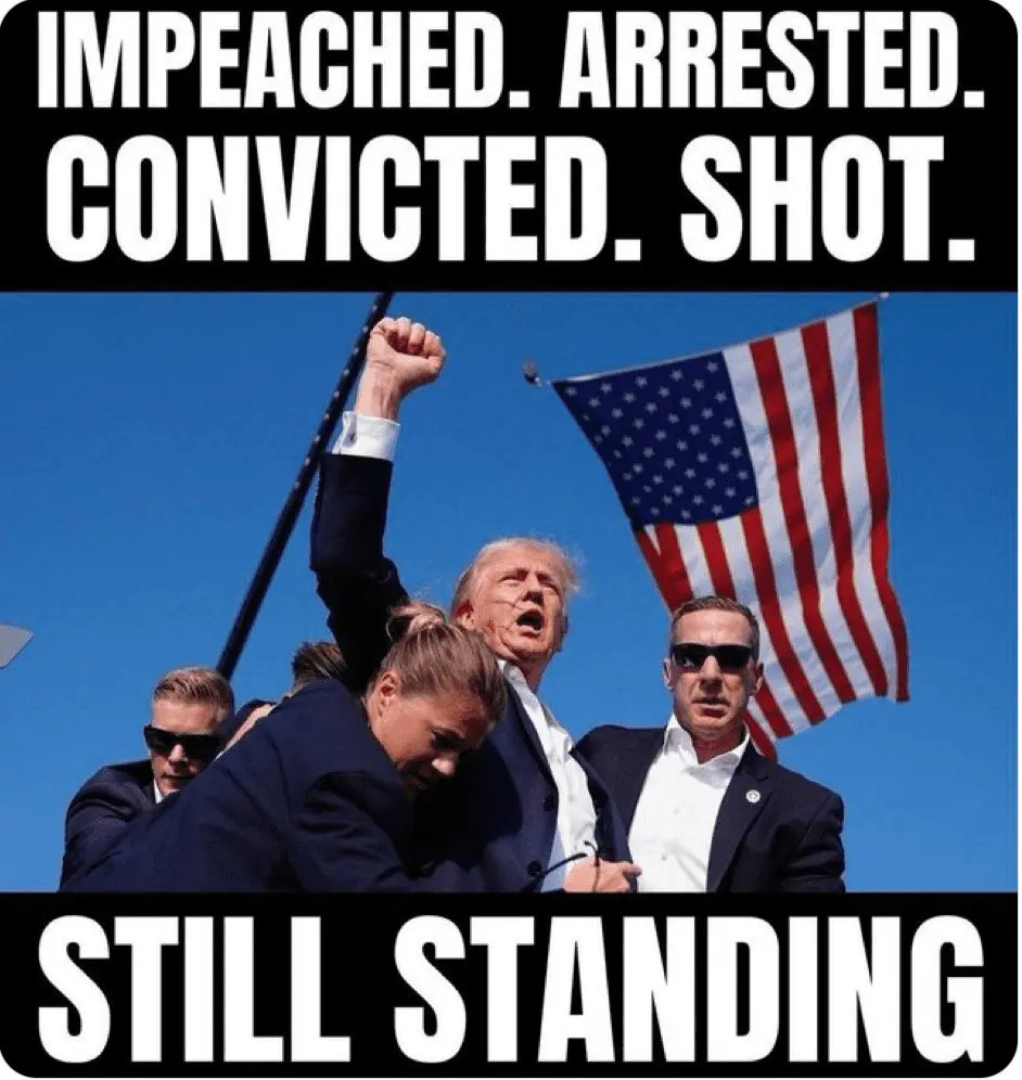 The shooter was an anti-Trumper, obviously, but that isn’t the point. The point is that Trump was inches from dying and stood up, defiant and pissed off. Who shot him is irrelevant.