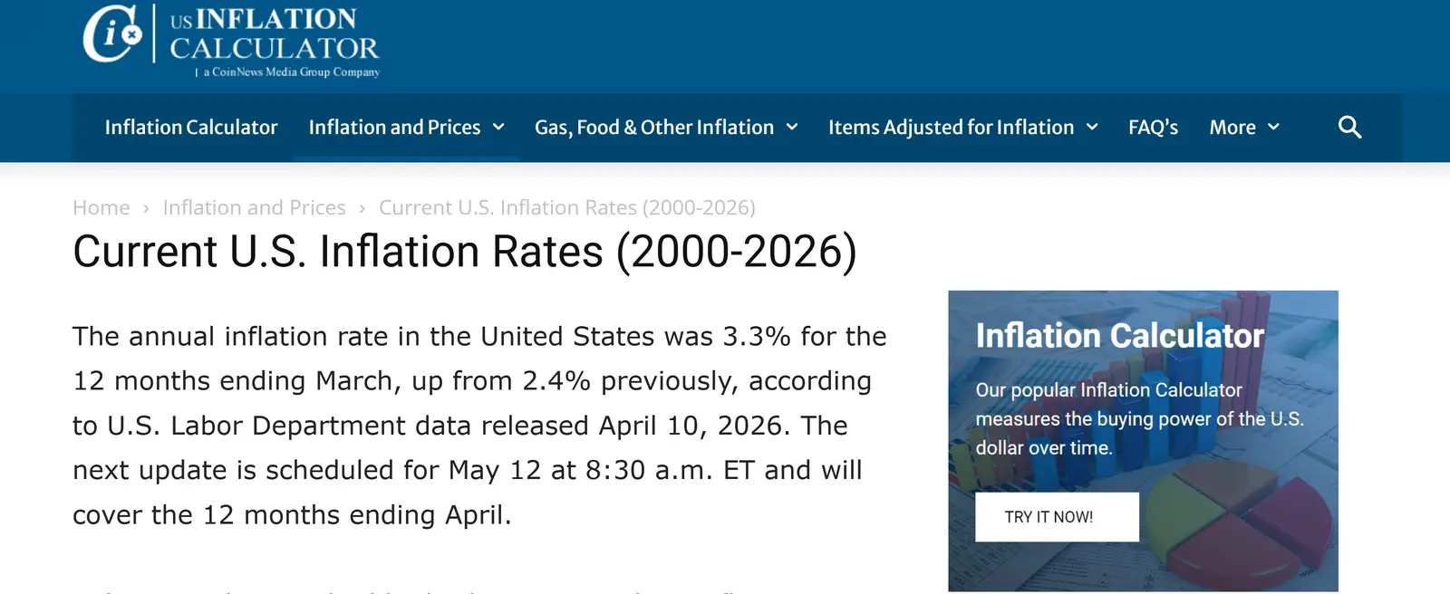 Year-over-year inflation is 3.3% (up nearly a point just from last month). That's because that includes eleven months of data that precede the start of Trump's war and energy crisis.