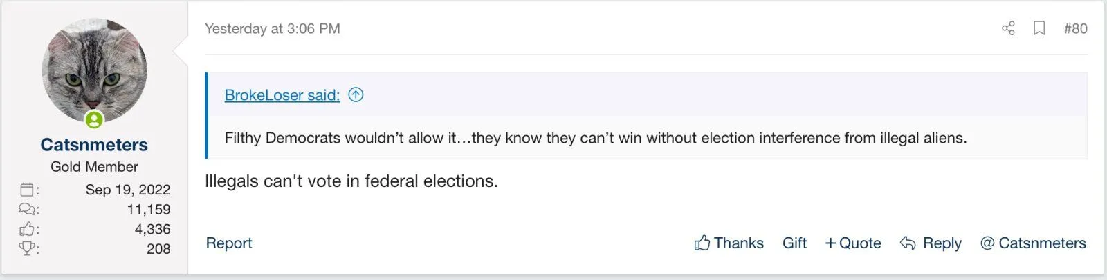 Can illegals vote in federal elections?My rant was prompted by the ignorant post you made in a feeble attempt to discredit mine which was perfectly on-point.