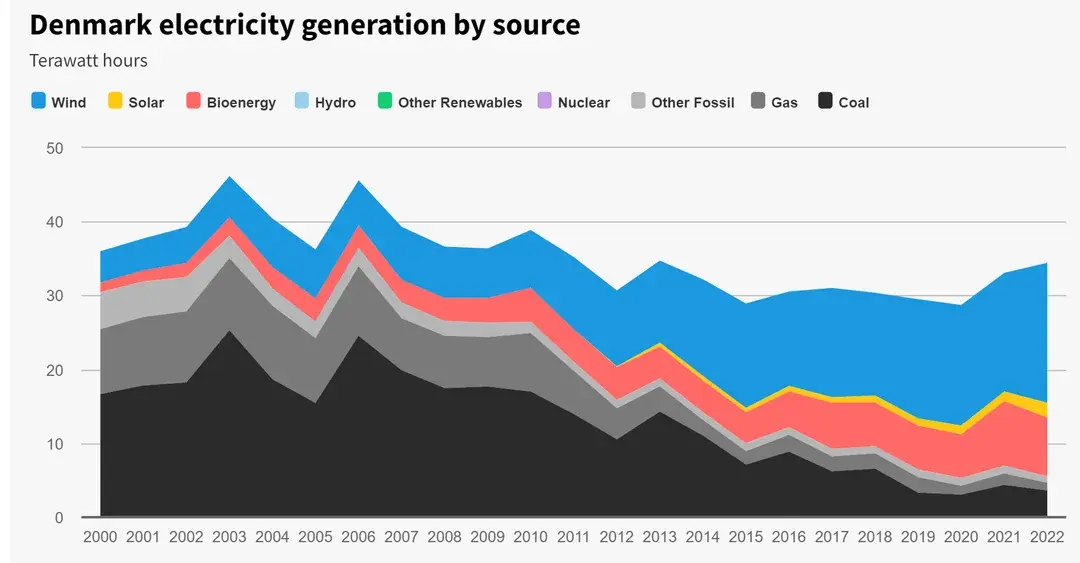 Denmark is less reliant on oil... Their economy will be much stronger for having cheap Wind energy.