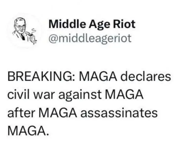 Trump has never been a unifier. He loves division, even among his staff. He finds delight in seeing people tear each other apart. This is typical of a narcissistic bully. He will delight if a Dem is murdered, just like he sat and enjoyed the mob on J6 that he helped pay for.