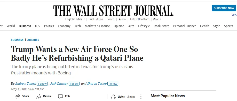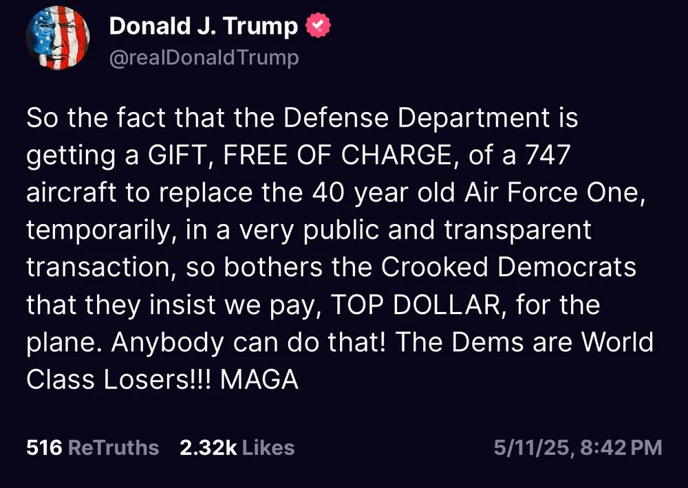 Qatar has ties to Iran. Felon 47 has confirmed that the aircraft that Qatar wants to gift to the UNITED STATES GOVENMENT has ties to Iran.