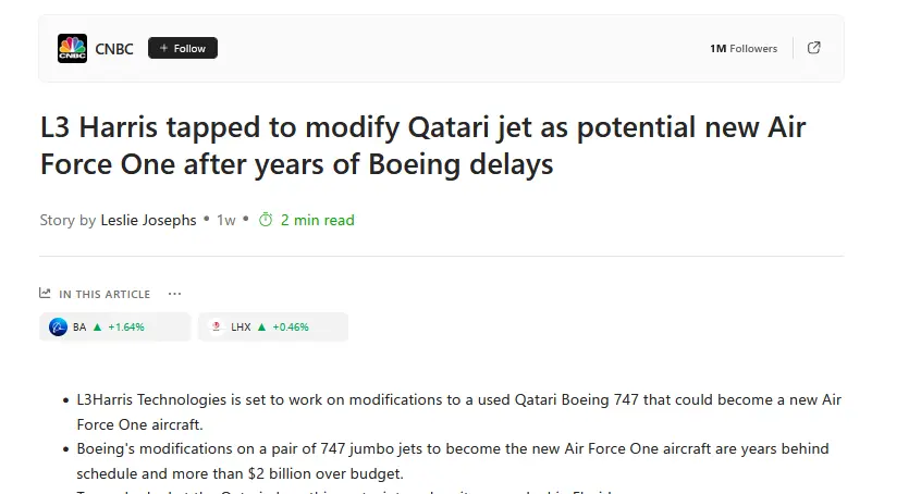 Oh...and Boeing sucks. They are $2 Billion over budget and 6 years late on the planes Trump ordered in his FIRST TERM.