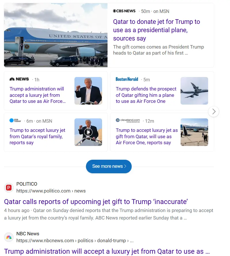 I might ask you the same question. Did you read ANY of those stories you found on your search. I've read three of them and a blog and not surprisingly, NONE OF THEM QUOTED A NAMED SOURCE and Qatari officials are saying they are inaccurate---even by your own search. This is nothing but a leftist smear campaign like so many others that we've seen in the past eight years. Be my guest, I have asked every person who has posted these RUMORS to produce even ONE named source and so far, none have been produced.Are you all stupid or just lazy? A simple Google search will pull up multiple sources of this story, geez: