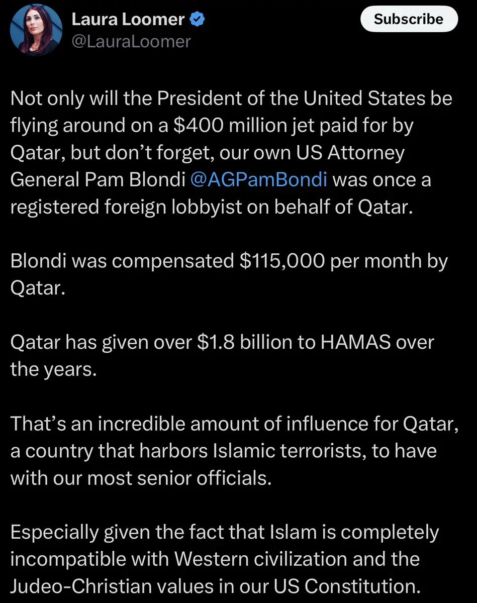 The Government Qatar funds terrorism in Israel. What would you and other MAGA MAGGOTS be doing if a President Harris was going to accept a 'gift' from a Middle Eastern Government that funds terrorism in Israel? You reek of your own hypocrisy.
