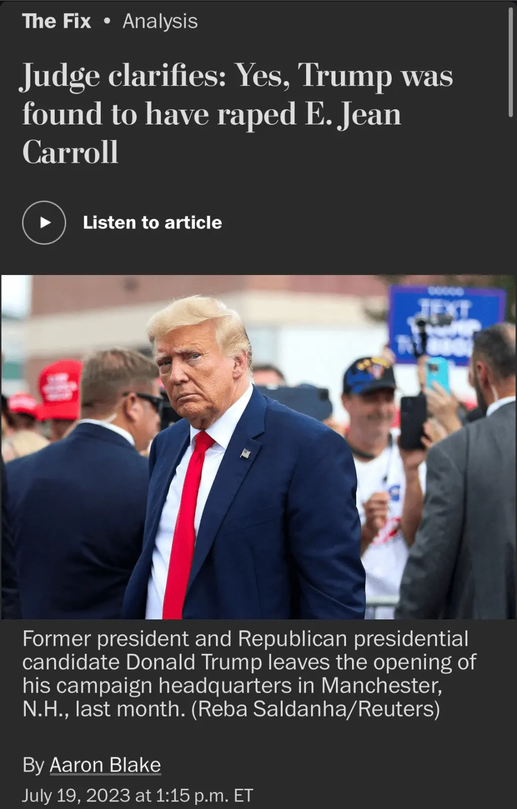 Maybe I missed something. People charged with rape aren't tried in civil court. I mean, they sent Bill Cosby to prison for what he did decades ago. Why doesn't Carroll charge Trump in criminal court if this judge is correct in their opinion? Maybe it has something to do with being able to find Trump guilty beyond reasonable doubt?