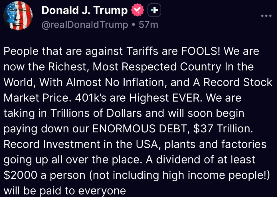 Now using Tariffs to finance an income supplement for Americans is next level brilliant in my opinion!