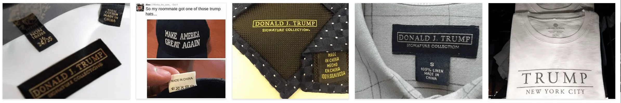 Here's a link to a search of photos of trump's merchandise made in China: