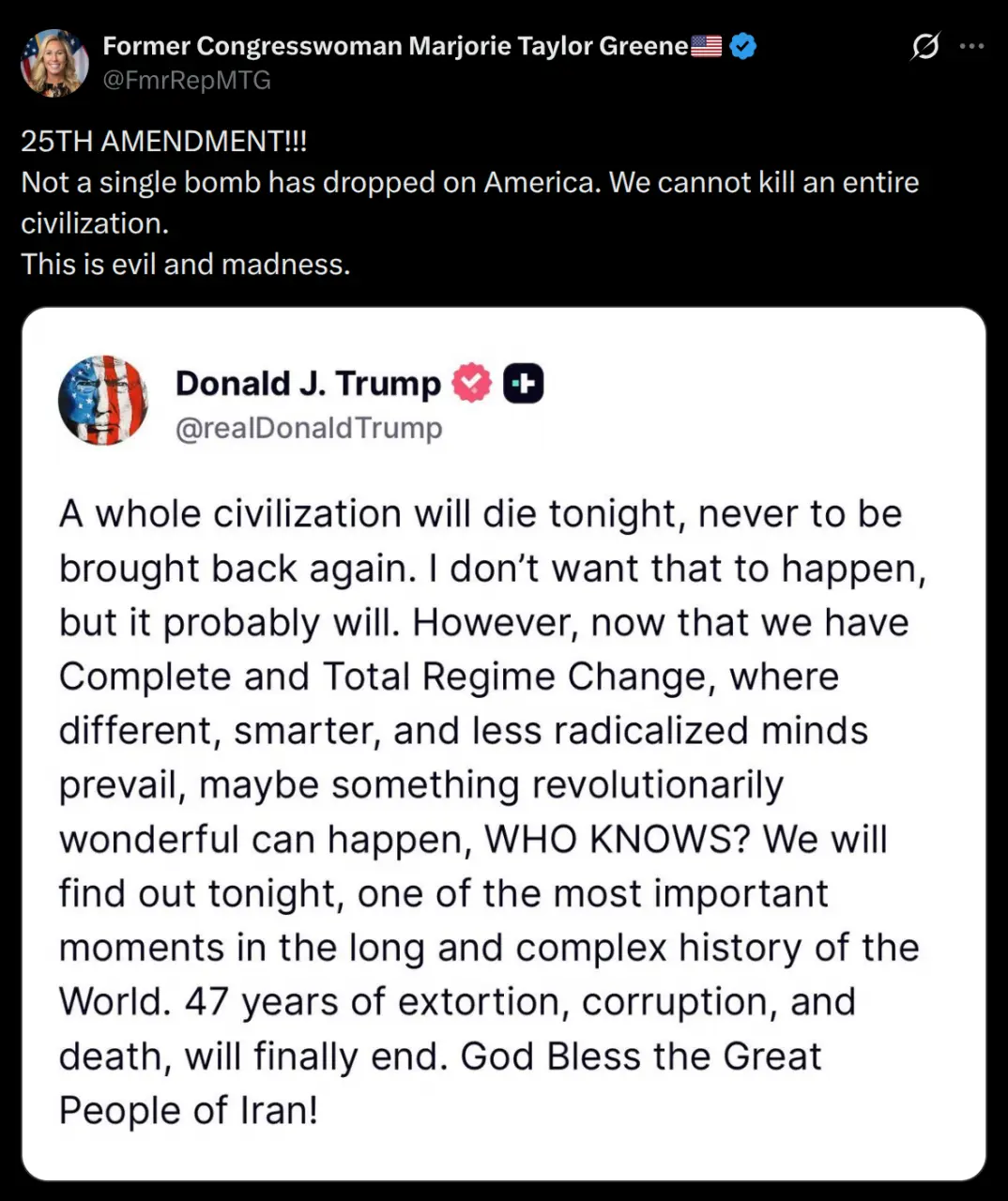 Is Trump planning on killing 93,000,000 people tonight? How is that less radicalized? It sounds a lot like Hitler, in his bloody years.
