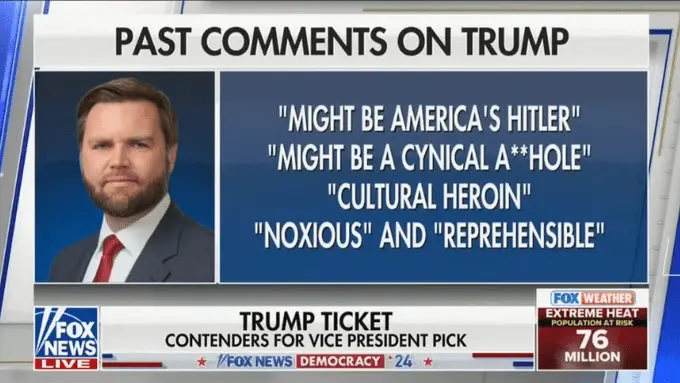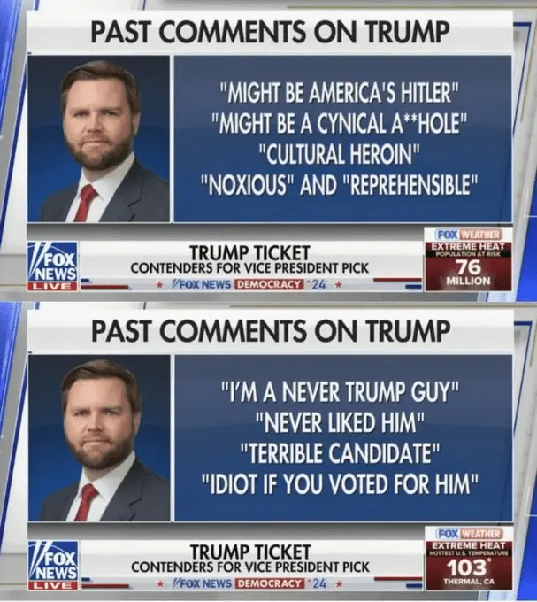 As such, Trump should tell Vance to tone down the political-talk in public, so DON'T try to be like Trump or any other career politicians. DON'T push buzzwords or too much vitriol. He should allow him to work from a position of strength. Promote this man as a guy who can craft policies and common sense actions to assist those most hurt by the current border and inflation. A military man who worked hard and who gets the concept of living through difficult circumstances. He can talk about the fact he trained with men of all races and religions, all who would rely on each other if sent to war.