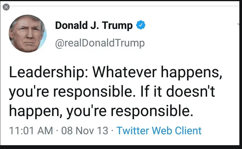 Finally, "No, I take NO responsibility at ALL." djt. Pathetic Quote. Not Leadership.
