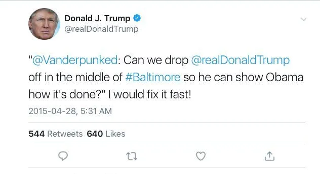 Trump Complained About Baltimore In 2015 But Blamed The 'African American President'