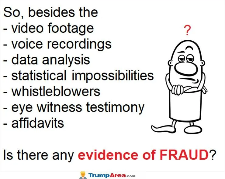 We weren't privy to a lot of evidence, because there wasn't much, hence no mention of fraud in the filings. Basically the strategy was to ask for an open-ended fishing expedition, despite state authorities, many of them Republican, saying it wasn't necessary.I'm not privy to all of the "evidence" of voter fraud presented to the courts.