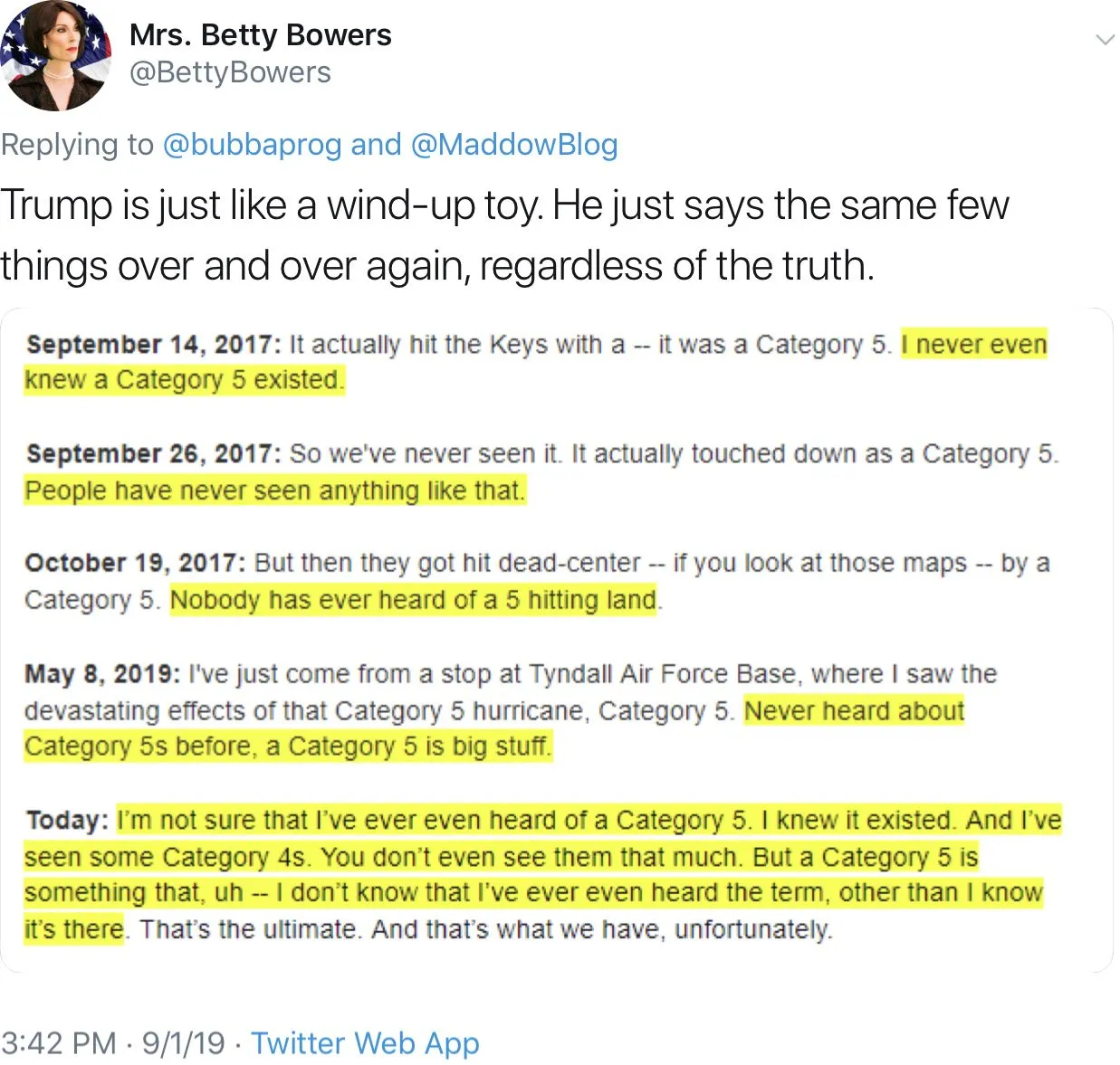 Yes, but the tell is in the screen name. A real MAGAclown wouldn't openly declare their Obama derangement syndrome. I suspect this is the same moron behind that rogue potus staff Twitter account.