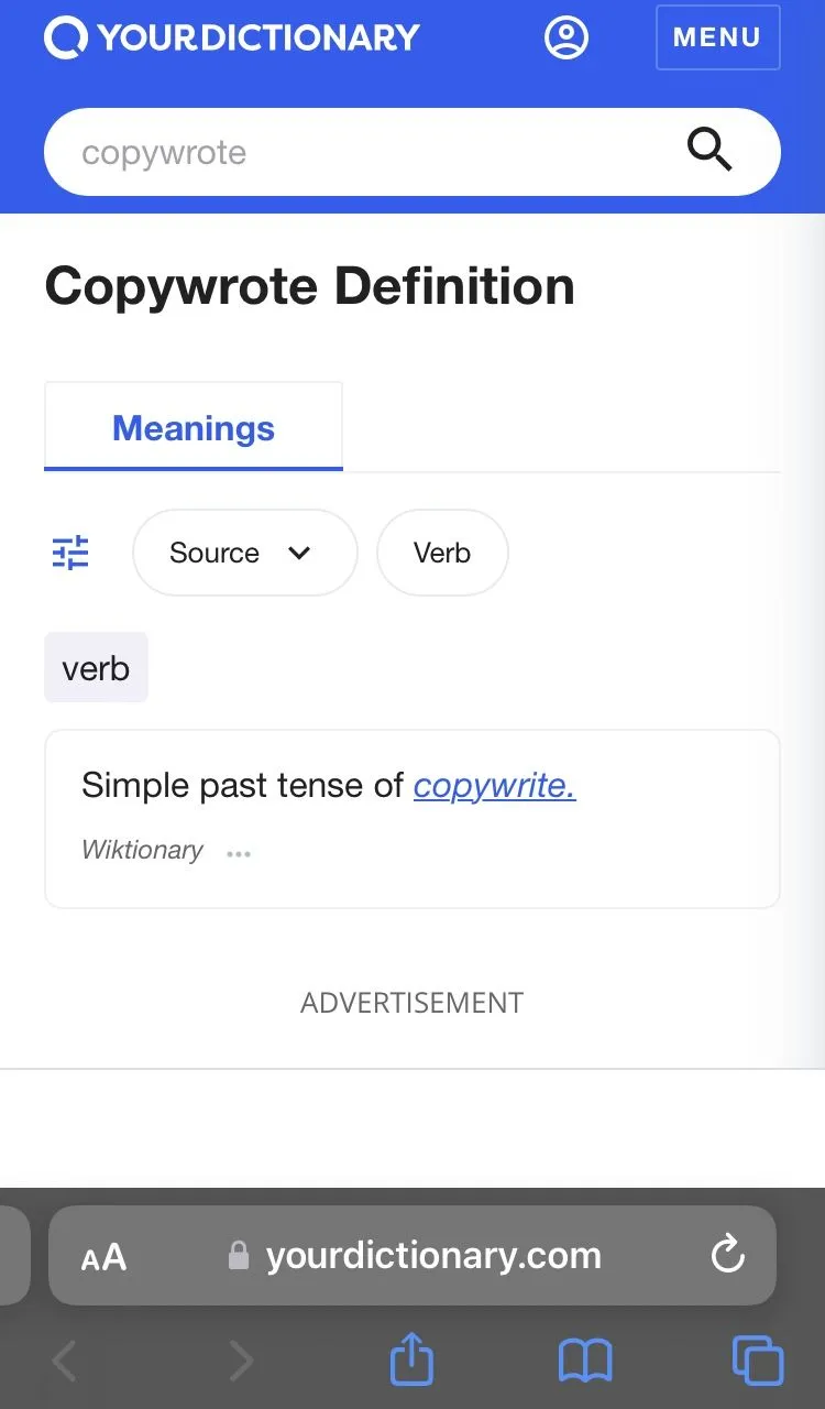 .Copywrote is the past tense of copywrite. Your home schooling probably didn't cover that.