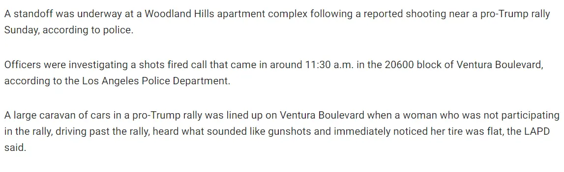 No One Inside After Standoff at Woodland Hills Apartment Complex Following Reported Shooting Near Pro-Trump Rally