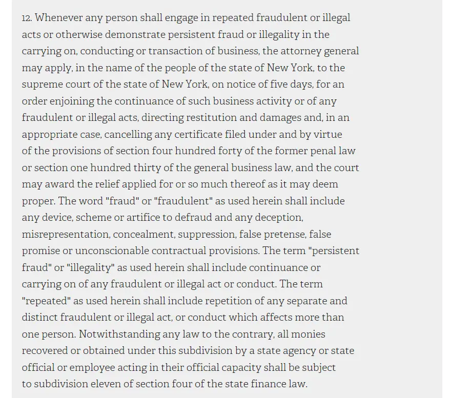 Incorrect, and FPOTUS#45 and Trump Organization have already been found to be liable for fraud and illegal business practices under NYS 63(12) above.