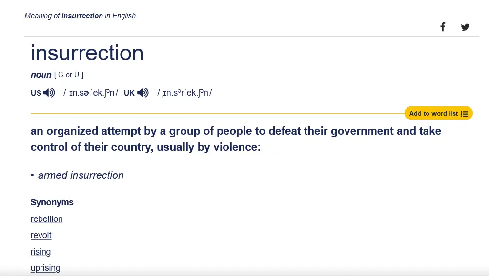 1. an organized attempt by a group of people to defeat their government and…dictionary.cambridge.org