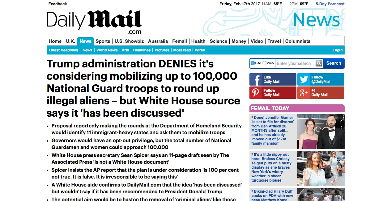 But the linked article is designed to make it look like President Trump is actively considering using 100K National Guard troops to fan out and round up illegal aliens. It only admits much later that it was a minor draft that never even got brought to the secretary, much less the President... where most people never read these articles that far.