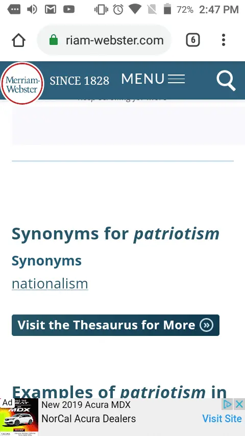 Meanwhile here's the honest meaning of patriotism from good old Merriam Webster's dictionary.