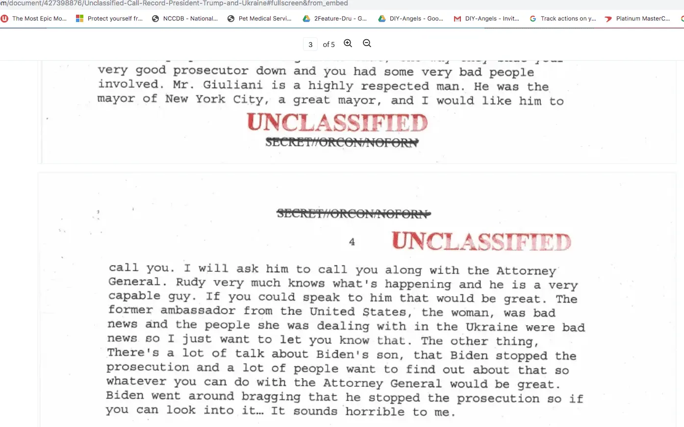 But the bigger issue for me is that he told the Ukraine President to call his personal attorney, a man who has no role in the US government. That makes it a personal favor, and not one being done for the government, in my opinion.