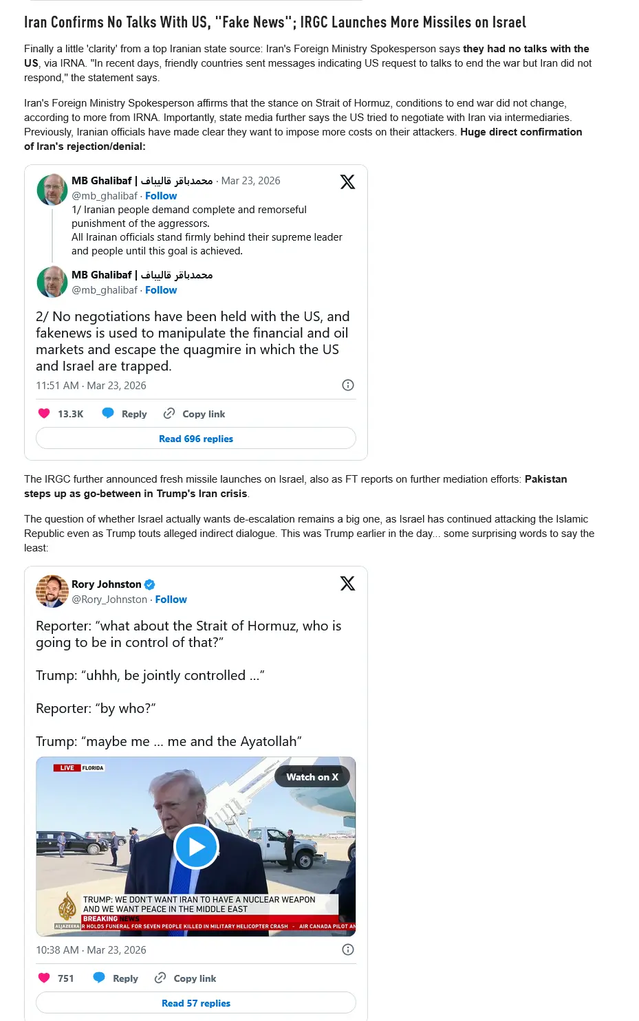 Iran Says Talks With US Are 'Fake News' After Trump Threatens To 'Just Keep Bombing', Wants Hormuz To Be 'Jointly Controlled'<!-- --> | ZeroHedge