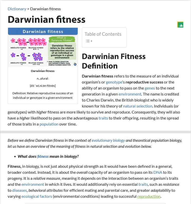 Darwinian fitness refers to the relative reproductive success of an individual or genotype in a given environment. Learn more and take the quiz!www.biologyonline.com