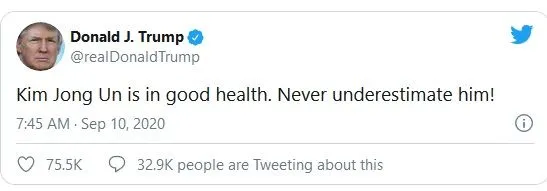 Just when the libs think they have Trump against the ropes -- he comes out swinging -- and he totally owned Biden and the communuist libs with this tweet about Kim Jong -- Yea, it may seem like this tweet about Kim's health is unprovoked, but it is not.... Trump knew that the Dems would try to make a big deal about Woodward's upcoming book because it depicts all of Trump's praise for Kim and vice versa -- and all of the flowery stuff he said about Kim in their "love" letters -- like praising how Kim murdered his uncle -- so Trump brilliantly turned it around on the Dems with one tweet....