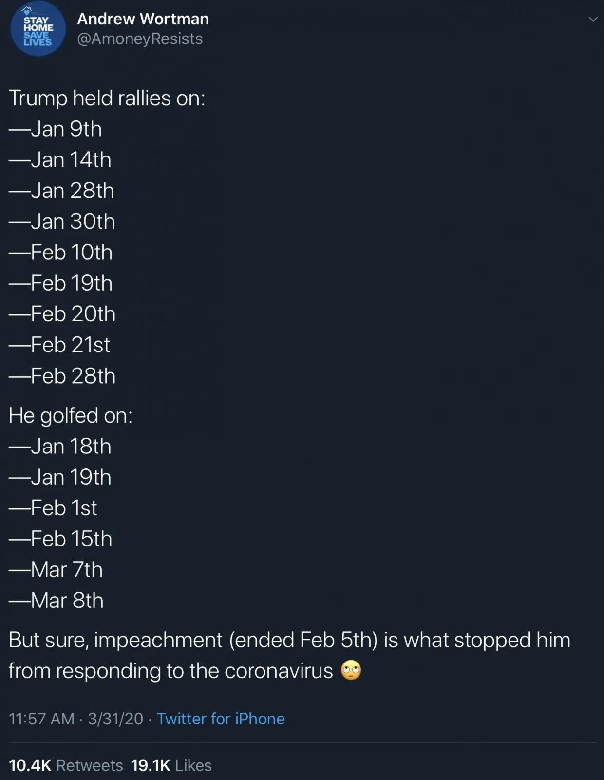 Alex Azar testified before Congress on, I think, Feb 24, just few days before we had evidence of community spread and a few weeks before shit really hit the fan so it’s a really insightful look at their thinking just before they had to pivot (and right before Azar was supplanted by Pence as the “leader” of the response).