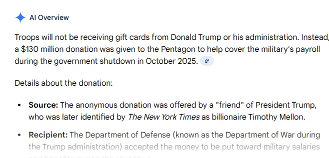 Even the liberal media is pointing that out. Not paying the troops and calling it a failure if Trump's attempt to do so does not provide the full amount that Democrats are depriving them of is a terrible bragging point.