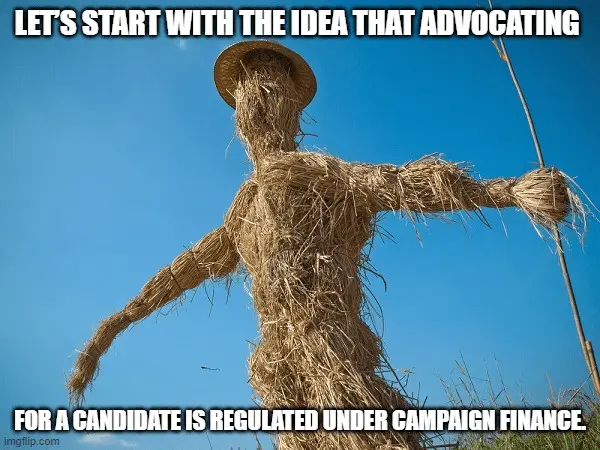 Let’s start with the idea that advocating for a candidate is regulated under campaign finance.