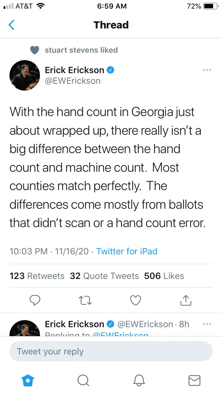 So, they still scrapped all the votes there. It was Dominion/Smartmatic machines throughout that were use to screw the totals. Not the first time either.