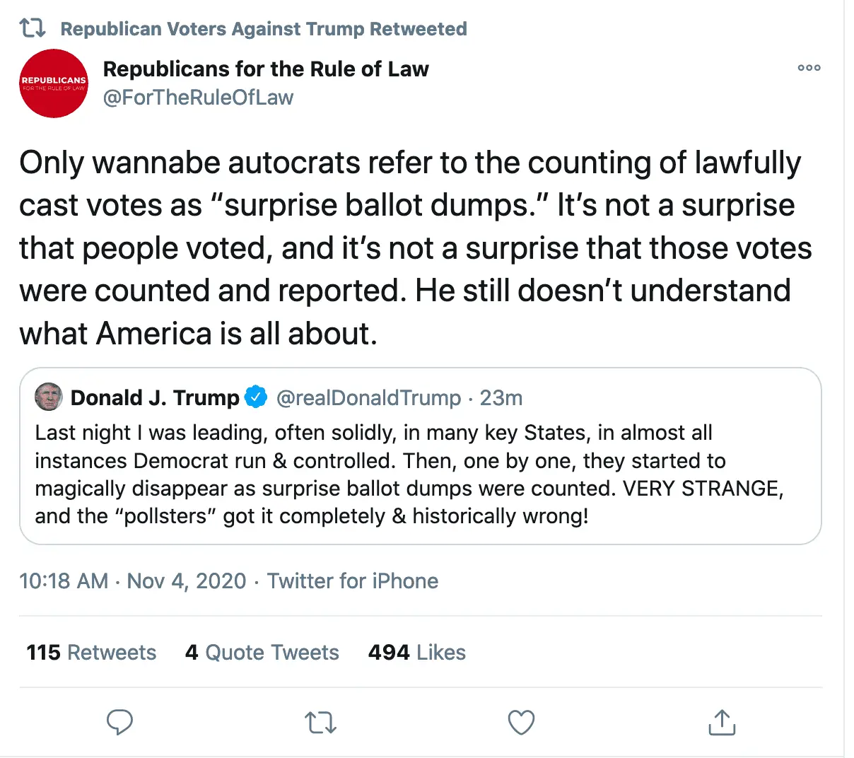 They kept counting all the ballots. Is that not what elections are for?