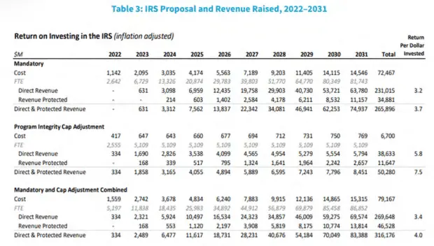 The American Families Plan Tax Compliance Plan, laying out the case for expanding the IRS and significantly increasing enforcement activities. The report includes a table showing that they would use the funding boost to add precisely 86,852 full-time equivalent (FTE) employees over the next decade. This would more than double the size of its current workforce: the IRS employed