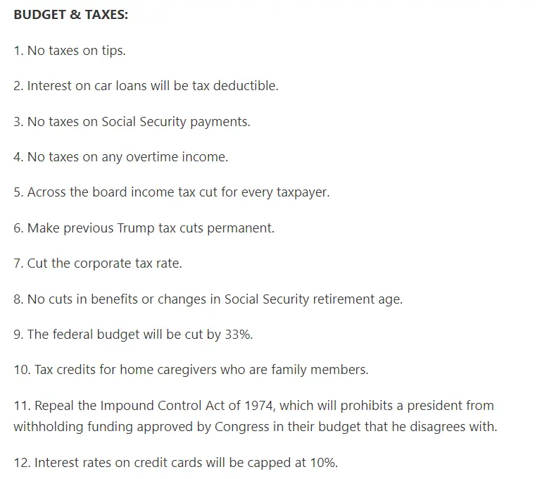 All the ones you picked depend 100% on Congress. How about listing the ones he can do on his own?Bookmarked. I dont think this will age well. Please dont leave the board so I can follow up on your prediction.
